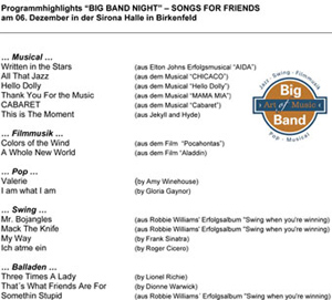 »BIG BAND NIGHT ... SONGS FOR FRIENDS« und den Highlights aus